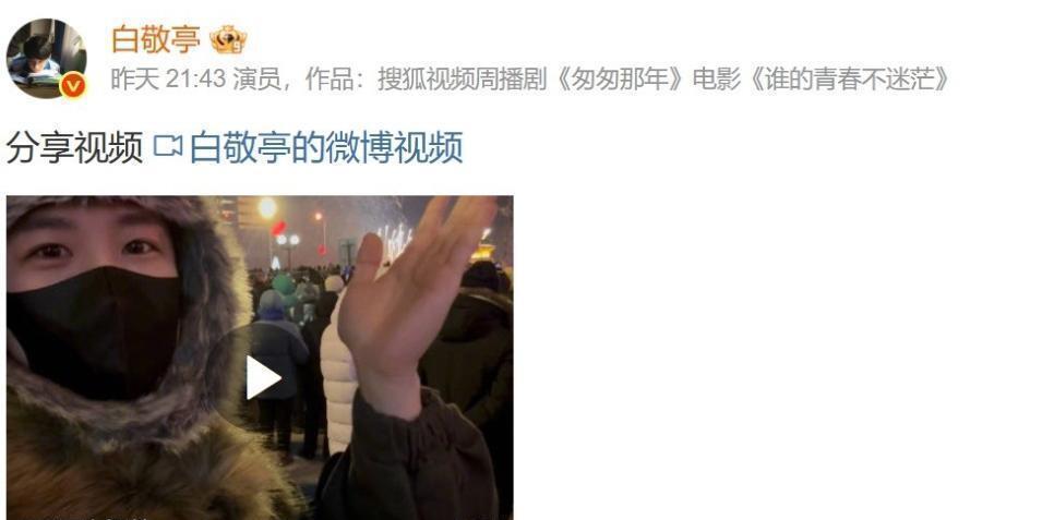 就在跨年本日,章若楠助剪发了个视频,她衣服那身亮片浅绿色扮演裙,对着镜头甜笑挥手,用的配景音乐是梁静茹的《给畴昔的我方》。巧了不是? 委果就在她登台的阿谁时辰点,另一位男主角白敬亭,也发了个看烟花的视频,你猜配景音乐用的啥? 一模同样的《给畴昔的我方》,如故消亡段歌词! 白敬亭在视频里戴着口罩耳罩,转过身对着镜头和缓一笑,还指了指天上的烟花。