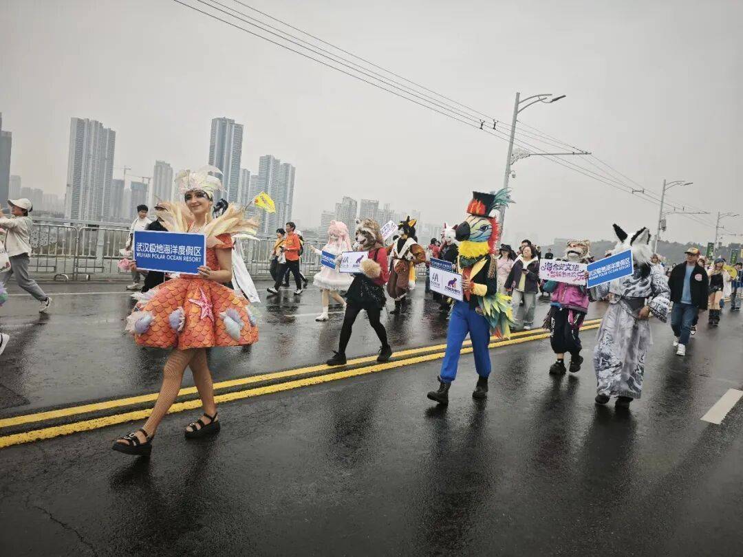 随后,武汉极地海洋度假区巡游方阵亮相,存眷飘溢的外籍桑巴舞者化身活力使臣,踏着明快激越的节律尽情摇曳,将厉害如火的南好意思风情与马戏般的动感狂欢;极地萌宠天团紧随自后,憨态可掬的白鲸、企鹅、老虎、小浣熊、鹦鹉等萌趣东谈主偶灵动俏皮、可儿出圈,将极地海洋的养息与玄幻,洒满江城街头!